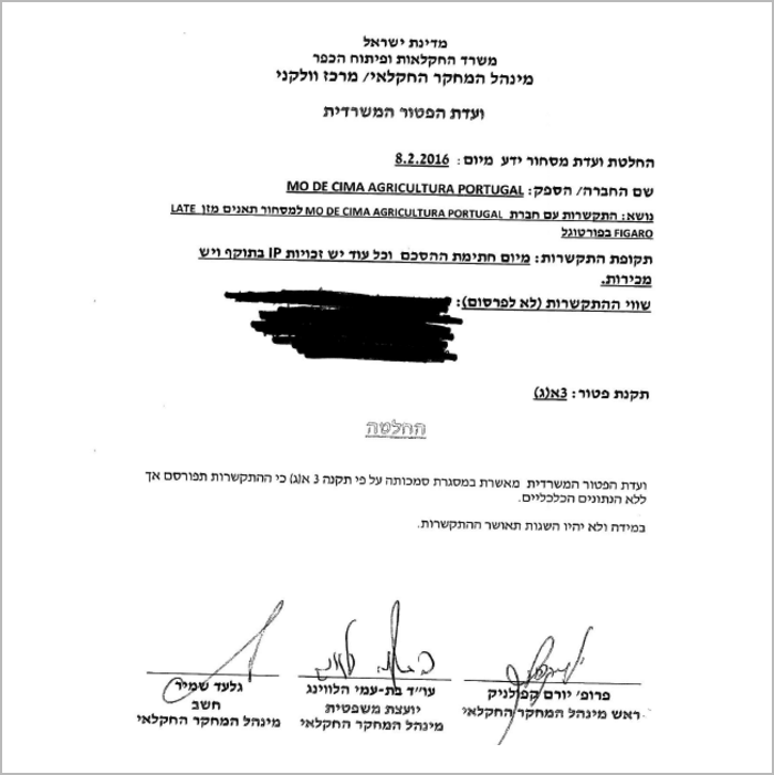 מינהל המחקר החקלאי סבור כי חשיפת ההיקפיים הכספיים תפגע במו”מ עתידי, ובאינטרסים המסחריים שלו. אולם, במקרה זה, מתנגשים השיקולים העסקיים של המשרד עם הצורך בפיקוח ציבורי על שיתופי פעולה כלכליים של הממשלה עם גופים פרטיים, המחייב את שקיפות המידע. יתרה מזאת, נימוקי המינהל מעורר במידה מסויימת תמיהה, לאור העובדה שבהסכמי סחר אחרים כן חושף המינהל את סכומי ההתקשרות.