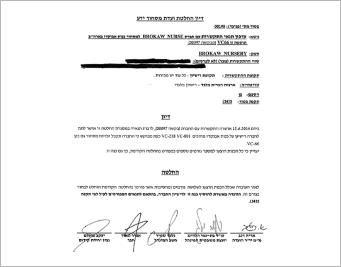נושא ההתקשרות: רישיון לחברה אמריקאית לעשות שימוש בידע שנצבר לגבי זני אבוקדו. המדינה אמורה לקבל תמלוגים מהמסחר. יש לחברה זכויות כבר על שני זנים, אז נתנו להם כבר זכות על עוד זן.